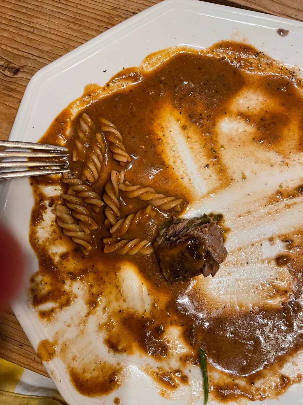 Genuss alleine? Ja, hier mit Roulade und Puntarellasalat